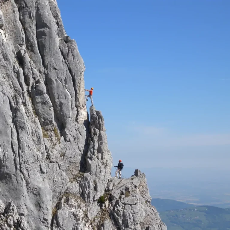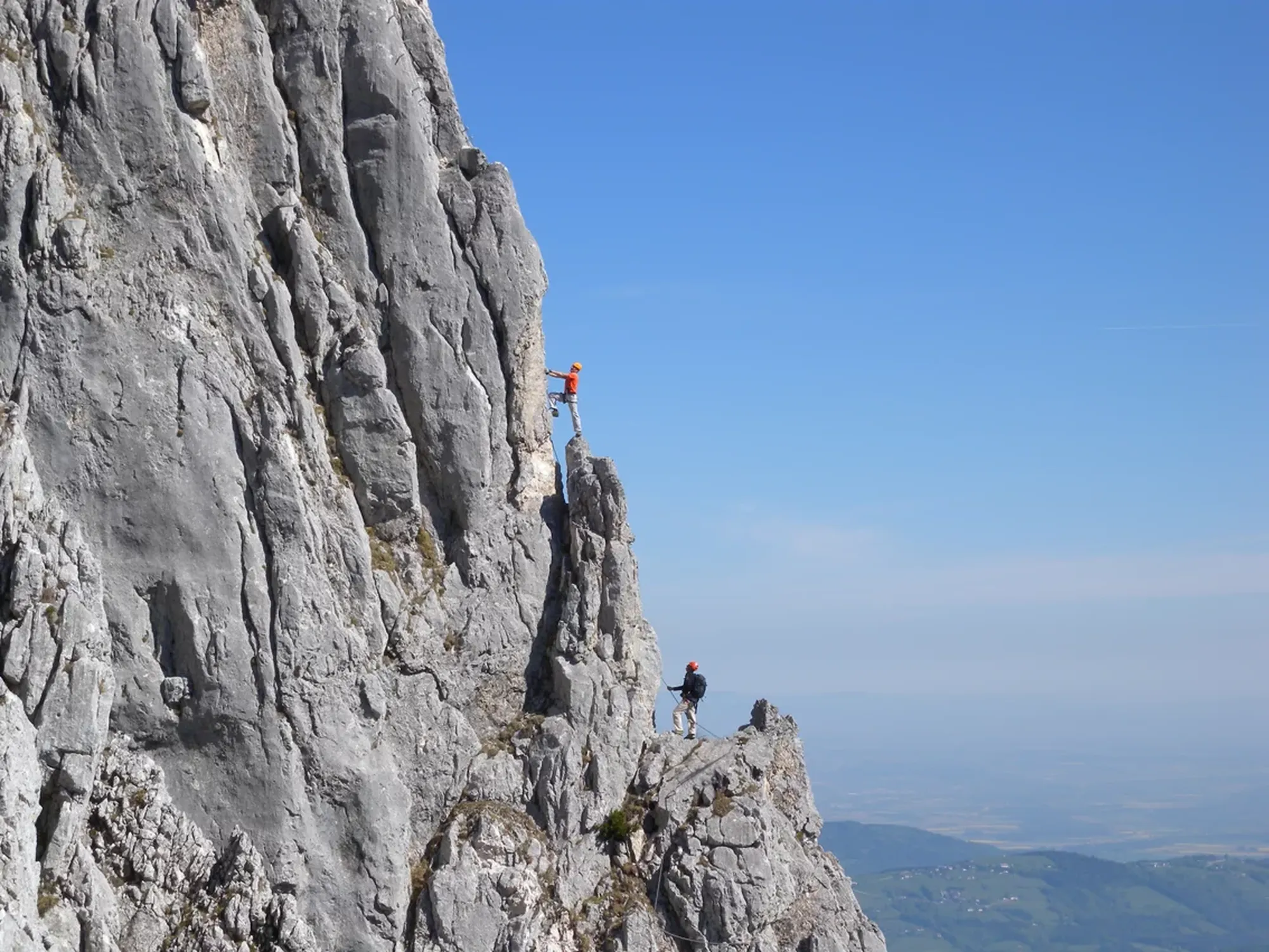 Der HTL Wels Klettersteig am Feuerkogel führt über die Nordostkante des Alberfeldkogels direkt zum Europakreuz und bietet Kletterspaß auf höchstem Niveau. Mit einer Länge von etwa 400 Metern und einem Höhenunterschied von rund 140 Metern wird der Steig mit den Schwierigkeitsgraden B/C/D bewertet.