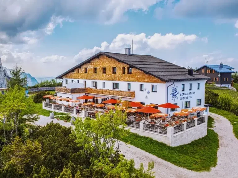 Das stilvolle Edelweiß bietet eine eher gehobenere Küche mit fein zubereiteten Speisen und einer erlesenen Weinauswahl. Die Preise liegen etwas höher, spiegeln aber die Qualität und das elegante Ambiente wider. Besonders beliebt ist die großzügige Sonnenterrasse mit herrlichem Panoramablick über das Salzkammergut.