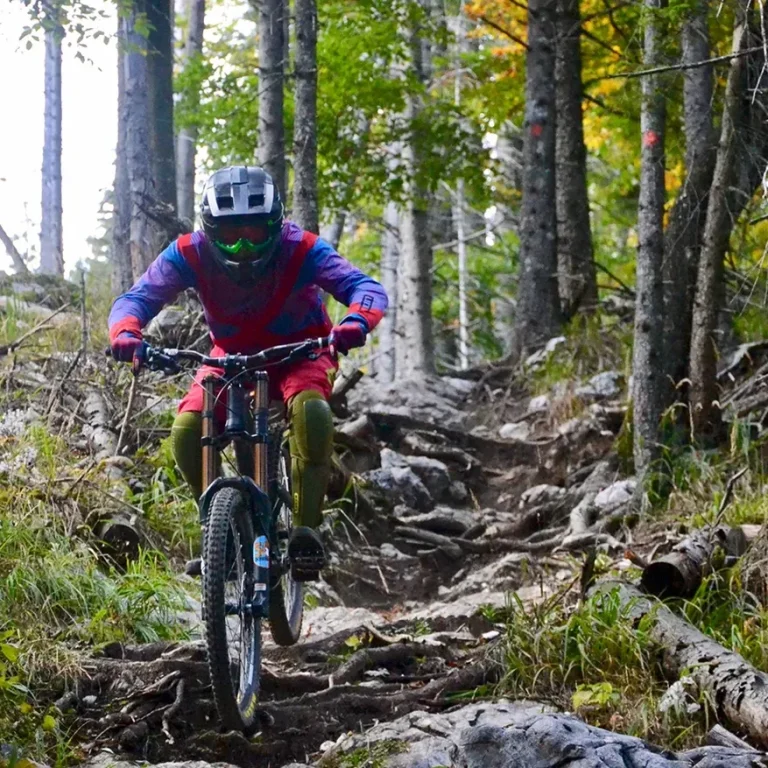 Der Feuerkogel eignet sich hervorragend zum Mountainbiken. Die berühmte Downhill-Strecke - genannt „Die Dunkelschwarze" - ist mit einer Länge von 5,6 km und einem Höhenunterschied von 1.050 Metern äußerst anspruchsvoll und führt über steile, wurzelige und steinige Passagen, darunter ein 50° steiler Lawinenhang.