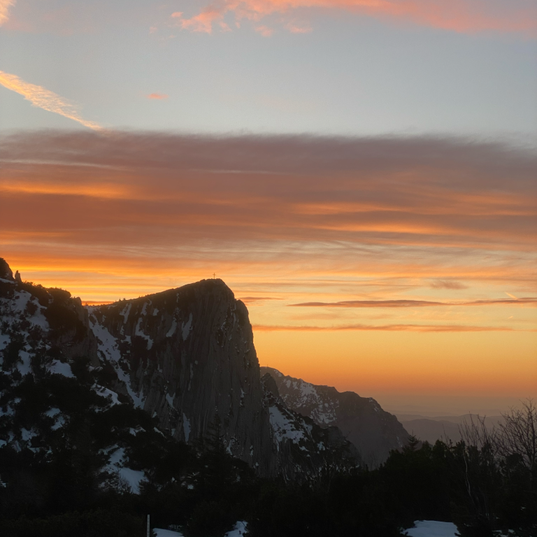 Abendlicher Blick auf die Felswand unterhalb des Europakreuz